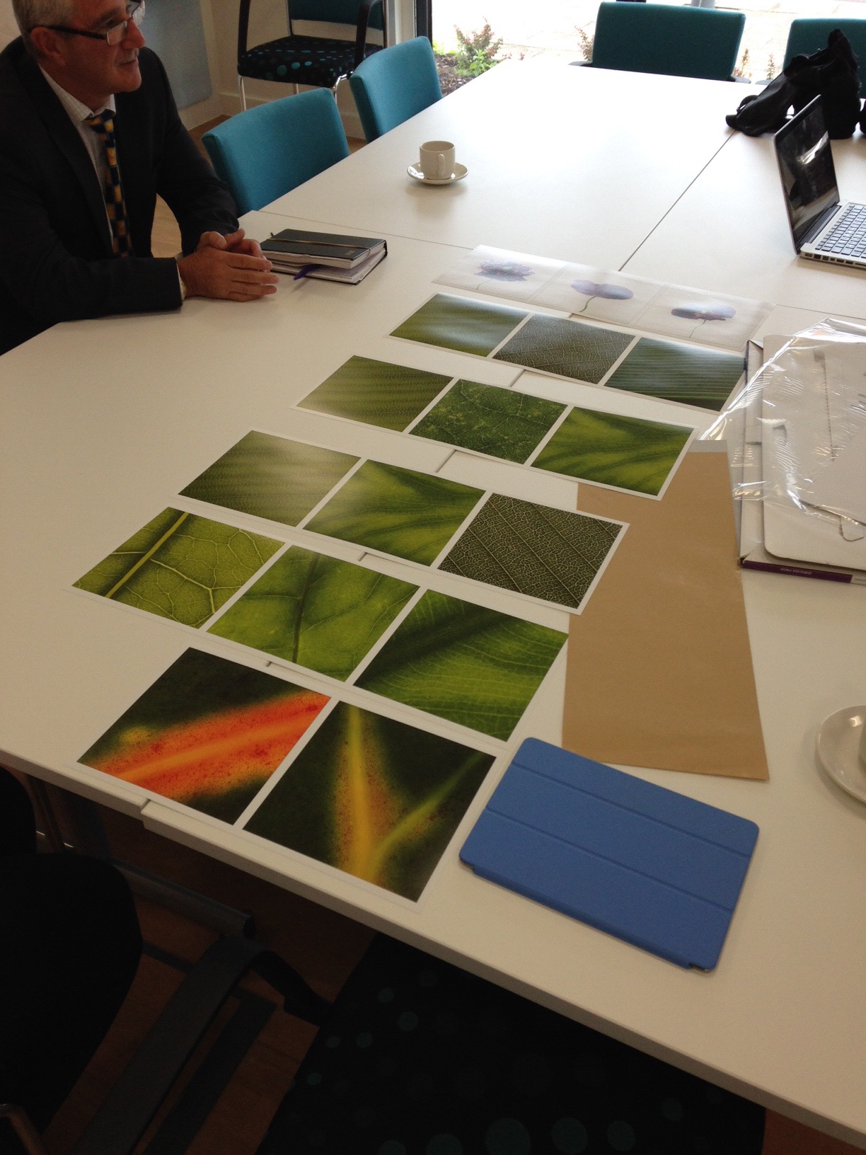 At a later date other members of staff from Cwm Taf Health board came to view the work. A decision was made as to which leaf triptych would be used for the top of the stairs space and also for the single leaf photograph in the corridor space. Amongst colleagues it was also suggested that another image could be used in the foyer area.