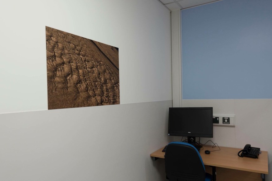 The wall coverings are printed onto vinyl paper which can be easily maintained for hygiene reasons. These works are viewed upon entry to both reception areas, giving both patients and staff an impact upon arrival. The other works are printed onto C-type matt photo paper and mounted onto dibond to give the best finish and archival quality. These pieces are displayed throughout the building, which include the out patient reception area, waiting area, patient and consultation rooms, staff rooms and an area located near pharmacy.